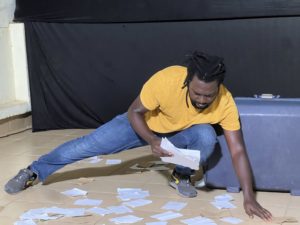 Actualité Clichés de l’homme en cascade – Création Après une phase d’exploration et de recherche en août 2025 à Dakar, le spectacle verra le jour en mai 2026 à Yaoundé. Restitution de l’atelier de recherche à Dakar en août 2025. Comédien : Moïse Bangoura